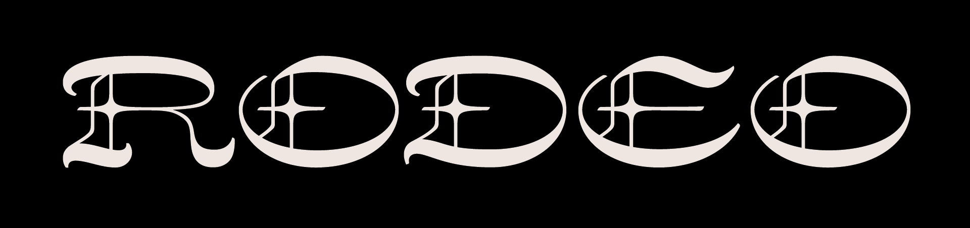 The final direction was born with a sketch of the word, "RODEO," where the letterforms loosely retain Blackletter construction combined with the wide horizontal stress common in Western type.