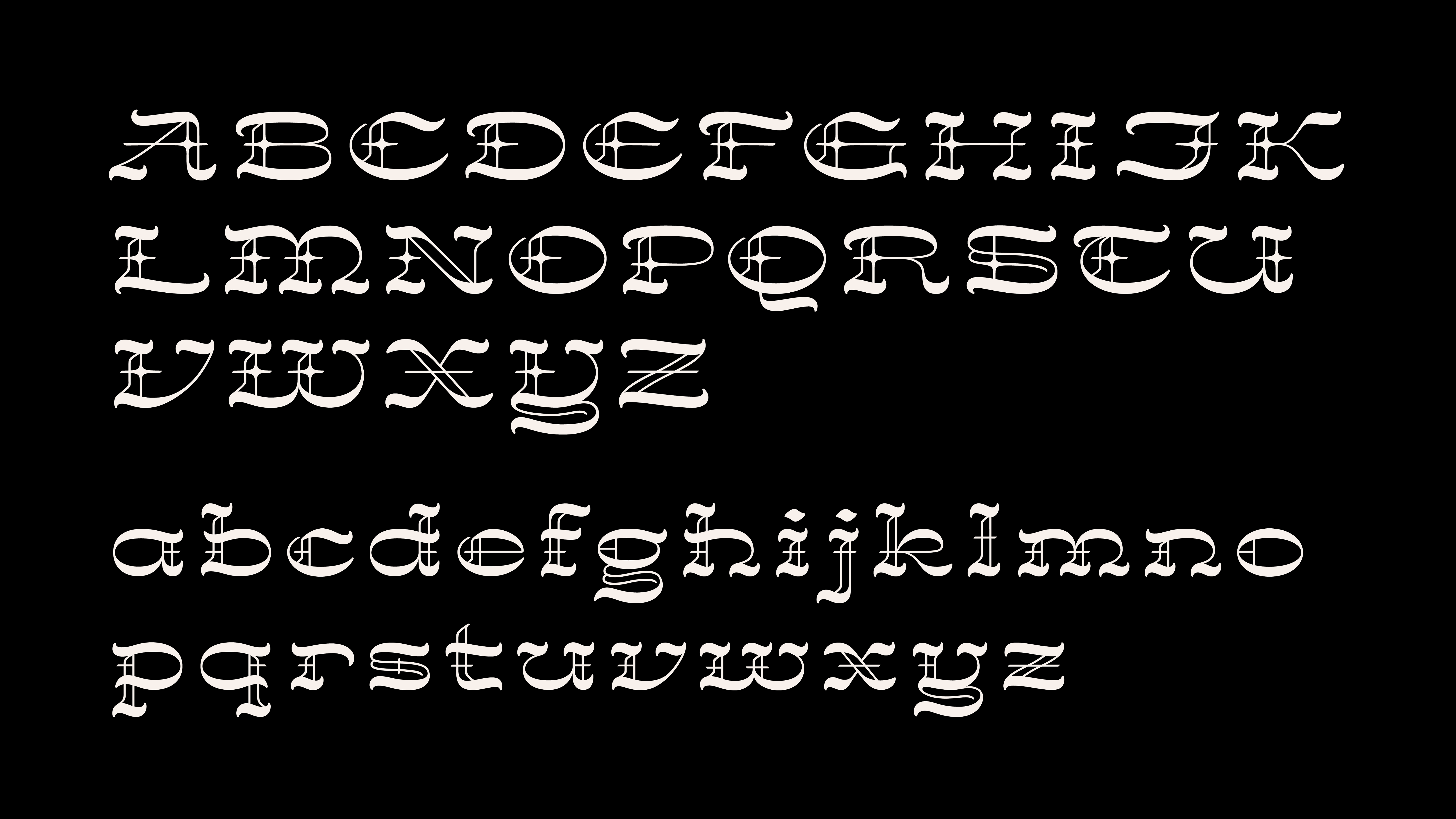 My breakthrough moment was when I saw a monoline interpretation of blackletter and realized that I could use this to keep the rough skeleton of Blackletter construction, while giving extra weight to the horizontals to create the signature Western look of reverse contrast.